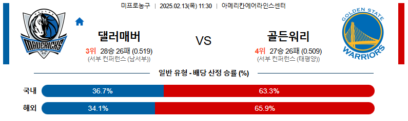 댈러스 대 골든스테이트 NBA 02월13일 맞대결 생중계, 스포츠중계, 스포츠분석