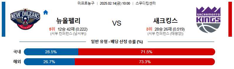 뉴올리언스 대 새크라멘토 NBA 02월14일 맞대결 생중계, 스포츠중계, 스포츠분석