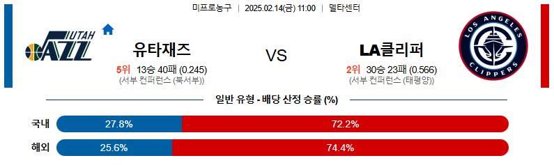 유타 대 LA클리퍼스 NBA 02월14일 맞대결 생중계, 스포츠중계, 스포츠분석