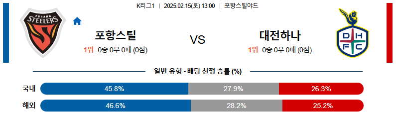 포항스틸러스 대 대전시티즌 K리그1 02월15일 맞대결 생중계, 스포츠중계, 스포츠분석