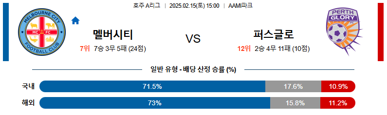 멜버른시티 대 퍼스글로리 호주1부 02월15일 맞대결 생중계, 스포츠중계, 스포츠분석