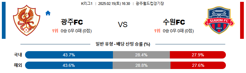광주FC 대 수원FC K리그1 02월15일 맞대결 생중계, 스포츠중계, 스포츠분석