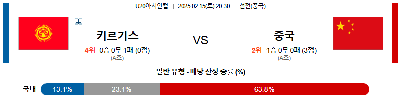키르기스스탄 대 중국 U20아시안컵 02월15일 맞대결 생중계, 스포츠중계, 스포츠분석