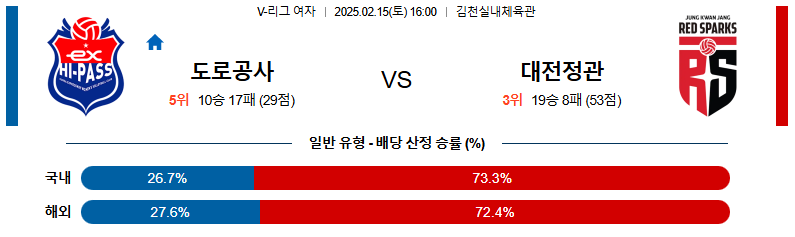 도로공사 대 정관장 V리그(여) 02월15일 맞대결 생중계, 스포츠중계, 스포츠분석