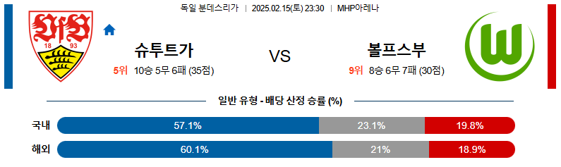 슈투트가르트 대 볼프스부르크 분데스리가 02월15일 맞대결 생중계, 스포츠중계, 스포츠분석