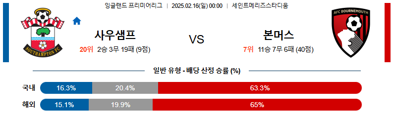 사우스햄튼 대 본머스 EPL 02월16일 맞대결 생중계, 스포츠중계, 스포츠분석