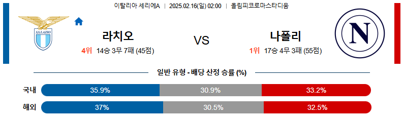 라치오 대 나폴리 세리에A 02월16일 맞대결 생중계, 스포츠중계, 스포츠분석