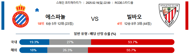 에스파뇰 대 빌바오 라리가 02월16일 맞대결 생중계, 스포츠중계, 스포츠분석