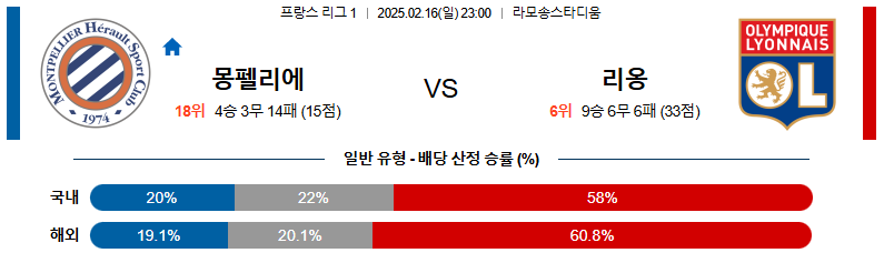 몽펠리에 대 리옹 리그앙 02월16일 맞대결 생중계, 스포츠중계, 스포츠분석