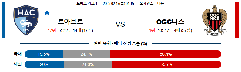르아브르 대 니스 리그앙 02월17일 맞대결 생중계, 스포츠중계, 스포츠분석