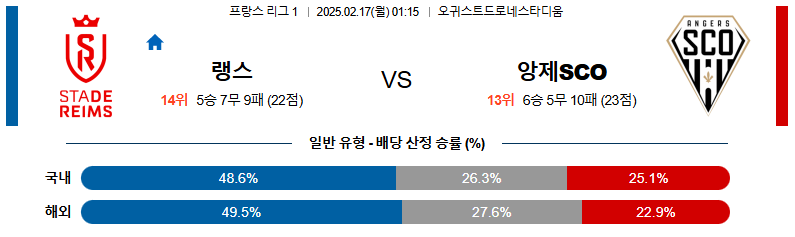 랭스 대 앙제 리그앙 02월17일 맞대결 생중계, 스포츠중계, 스포츠분석