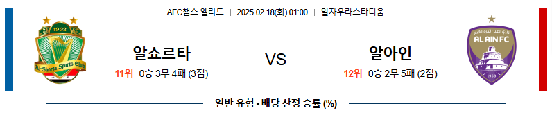 알쇼르타 대 알아인 AFC챔스 02월18일 맞대결 생중계, 스포츠중계, 스포츠분석