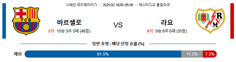 바르셀로나 대 라요 라리가 02월18일 맞대결 생중계, 스포츠중계, 스포츠분석