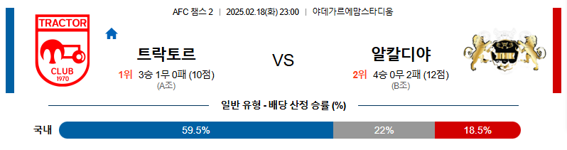 트락토르 대 알칼리디야 AFC챔스2 02월18일 맞대결 생중계, 스포츠중계, 스포츠분석