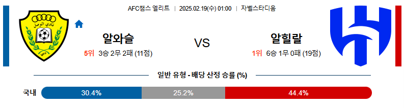 알와슬 대 알힐랄 AFC챔스 02월19일 맞대결 생중계, 스포츠중계, 스포츠분석