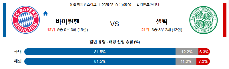 바이에른뮌헨 대 셀틱 UEFA챔피언스리그 02월19일 맞대결 생중계, 스포츠중계, 스포츠분석