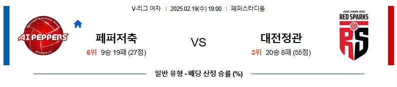 페퍼저축은행 대 정관장 V리그(여) 02월19일 맞대결 생중계, 스포츠중계, 스포츠분석