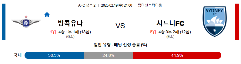 방콕 대 시드니 AFC챔스2 02월19일 맞대결 생중계, 스포츠중계, 스포츠분석