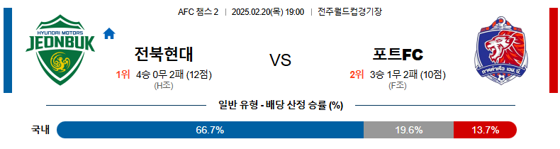 전북 대 포트 AFC챔스2 02월20일 맞대결 생중계, 스포츠중계, 스포츠분석