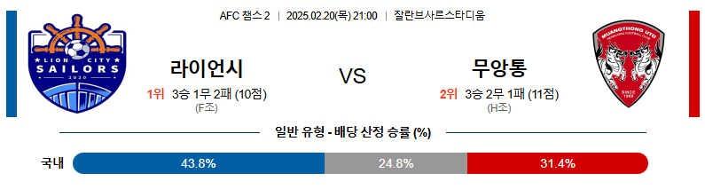라이언시티 대 무앙통 AFC챔스2 02월20일 맞대결 생중계, 스포츠중계, 스포츠분석