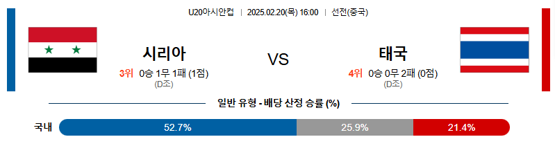 시리아 대 태국 U20아시안컵 02월20일 맞대결 생중계, 스포츠중계, 스포츠분석