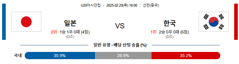 일본 대 한국 U20아시안컵 02월20일 맞대결 생중계, 스포츠중계, 스포츠분석