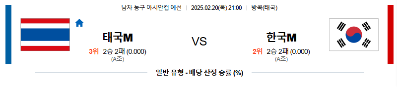 핸디캡 승부에서 한국의 승리를 추천드립니다. 태국의 핸디캡 승리도 배당을 노리는 선택으로 고려해볼 수 있습니다.