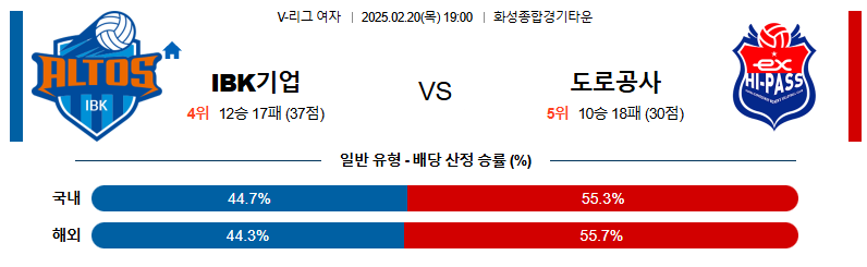 기업은행 대 도로공사 V리그(여) 02월20일 맞대결 생중계, 스포츠중계, 스포츠분석
