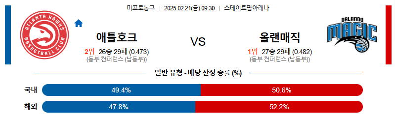 애틀란타 대 올랜도 NBA 02월21일 맞대결 생중계, 스포츠중계, 스포츠분석