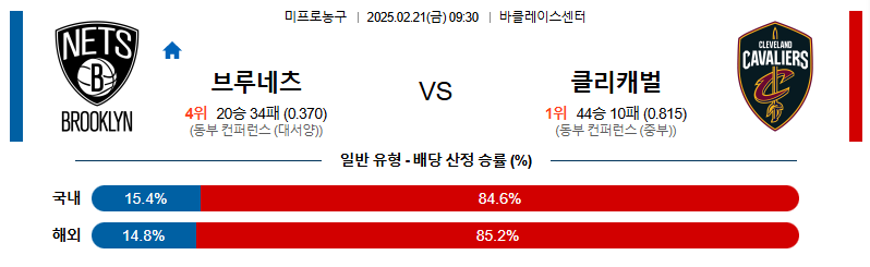 브루클린 대 클리블랜드 NBA 02월21일 맞대결 생중계, 스포츠중계, 스포츠분석