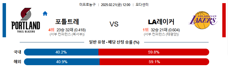 포틀랜드 대 LA레이커스 NBA 02월21일 맞대결 생중계, 스포츠중계, 스포츠분석