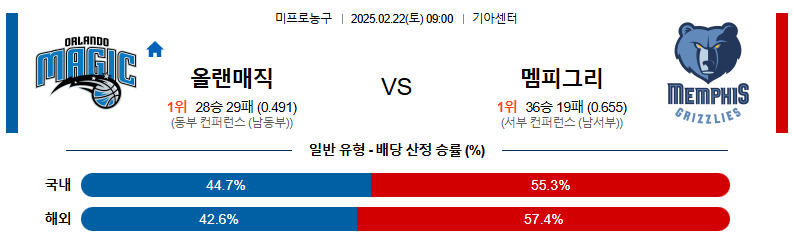 올랜도 대 멤피스 NBA 02월22일 맞대결 생중계, 스포츠중계, 스포츠분석