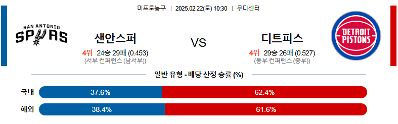 샌안토니오 대 디트로이트 NBA 02월22일 맞대결 생중계, 스포츠중계, 스포츠분석