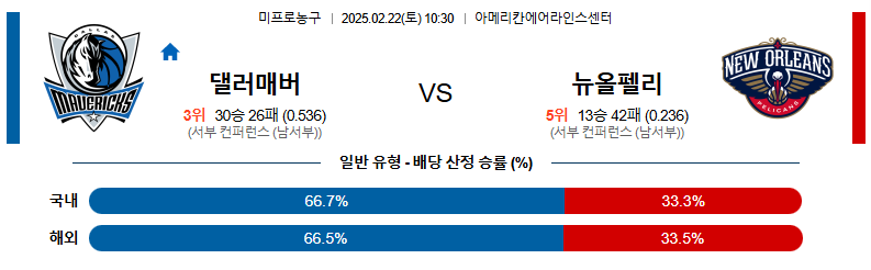 댈러스 대 뉴올리언스 NBA 02월22일 맞대결 생중계, 스포츠중계, 스포츠분석