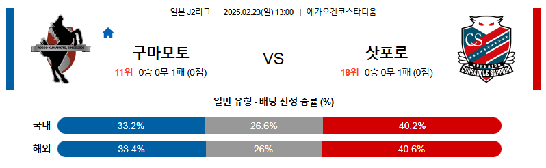 구마모토 대 삿포로 J리그2 02월23일 맞대결 생중계, 스포츠중계, 스포츠분석