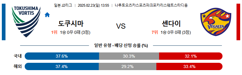도쿠시마 대 센다이 J리그2 02월23일 맞대결 생중계, 스포츠중계, 스포츠분석