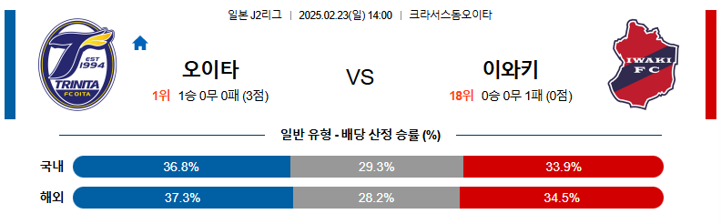 오이타 대 이와키 J리그2 02월23일 맞대결 생중계, 스포츠중계, 스포츠분석