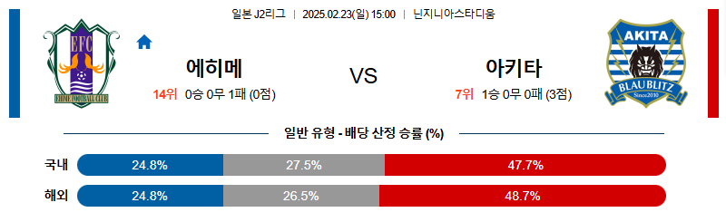 에히메 대 아키타 J리그2 02월23일 맞대결 생중계, 스포츠중계, 스포츠분석