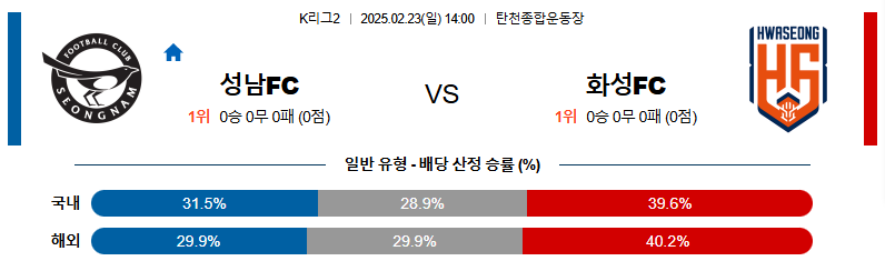 성남 대 화성 K리그2 02월23일 맞대결 생중계, 스포츠중계, 스포츠분석