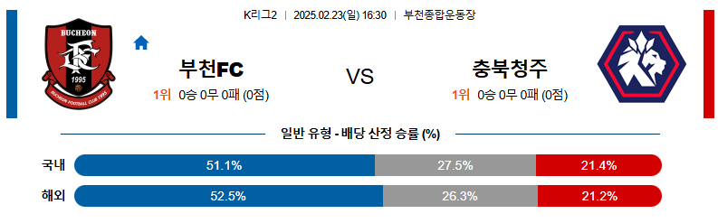 부천 대 충북청주 K리그2 02월23일 맞대결 생중계, 스포츠중계, 스포츠분석