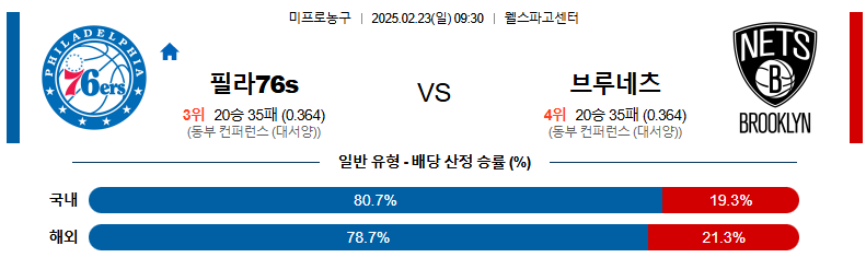 필라델피아 대 브루클린 NBA 02월23일 맞대결 생중계, 스포츠중계, 스포츠분석