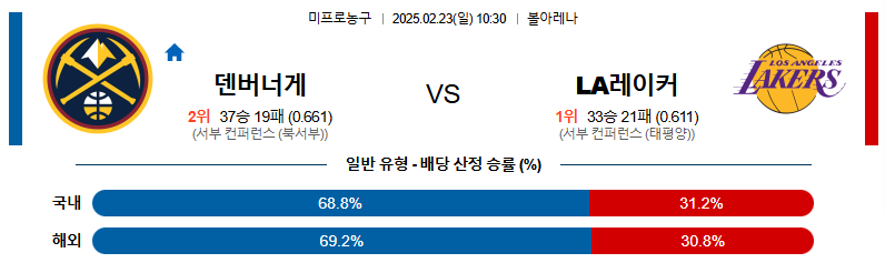덴버 대 LA레이커스 NBA 02월23일 맞대결 생중계, 스포츠중계, 스포츠분석
