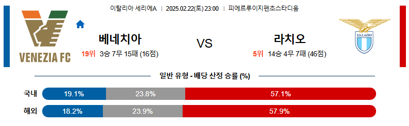 베네치아 대 라치오 세리에A 02월22일 맞대결 생중계, 스포츠중계, 스포츠분석