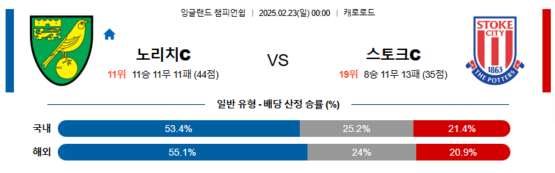 노리치 대 스토크 잉글랜드챔피언쉽 02월23일 맞대결 생중계, 스포츠중계, 스포츠분석