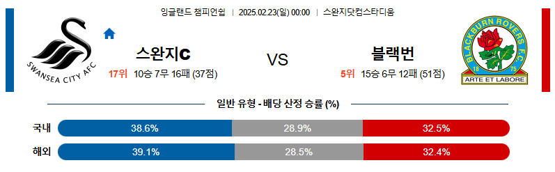 스완지 대 블랙번 잉글랜드챔피언쉽 02월23일 맞대결 생중계, 스포츠중계, 스포츠분석