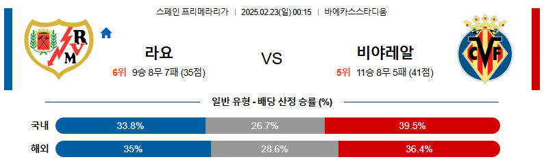 라요 대 비야레알 라리가 02월23일 맞대결 생중계, 스포츠중계, 스포츠분석