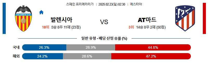 발렌시아 대 아틀레티코 라리가 02월23일 맞대결 생중계, 스포츠중계, 스포츠분석