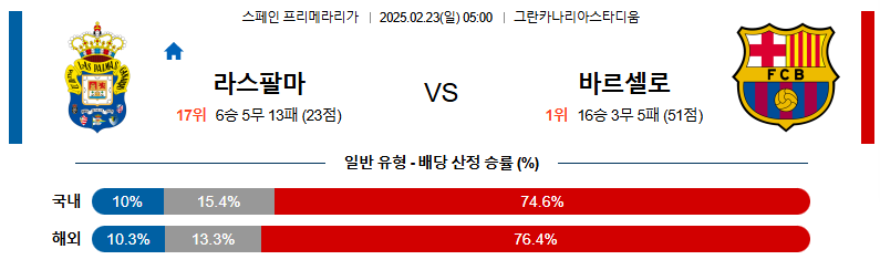 라스팔마스 대 바르셀로나 라리가 02월23일 맞대결 생중계, 스포츠중계, 스포츠분석