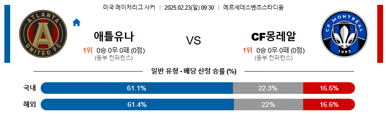 애틀랜타 대 몽레알 메이저사커 02월23일 맞대결 생중계, 스포츠중계, 스포츠분석