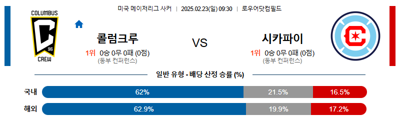 콜럼버스 대 시카고 메이저사커 02월23일 맞대결 생중계, 스포츠중계, 스포츠분석